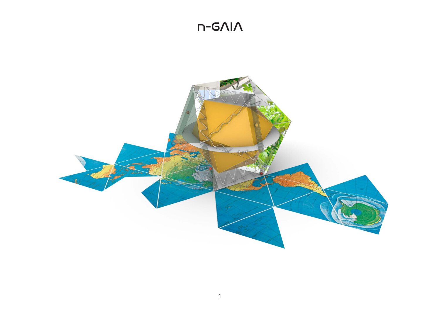 The triangulated skeleton has a synchronized white semi-transparent exterior skin and semi-transparent interior skin. Projections from the inside are visible as a massage of lights at the outside, best visible at night. The shadows of the triangulated structure between interior and exterior skin are visible as well when the projections are on.