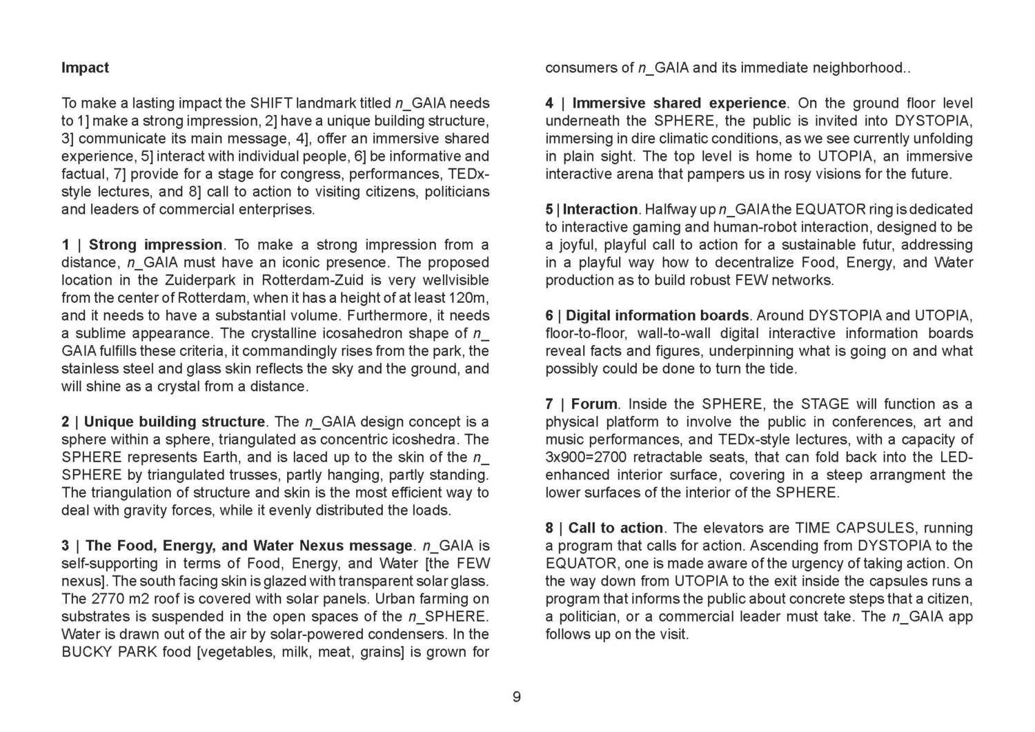 Working on Ilona’s Folded Volume, exhibited in the Synthetic Dimension exhibition in 1991, we discovered the crucial role of parametric design and component-based construction. The heavily cantilevering shape of Folded Volume is assembled from a dozen different components, irregular triangles, an irregular quadrangle, a pentagon and a hexagon, connected to their nearest neighbors following one and the same parametric detail. Our design adage “One Building, One Detail” was born. It lasted until 2001, designing and building the Web of North-Holland, to unleash the uncompromising design philosophy to the scale of architecture. In its appearance, the Web of North-Holland we consider both a work of art – that is when the gullwing doors are closed – and a piece of architecture – that is when the giant hinged sections of the skin open up to invite the public into the building. Neither the shape of Folded Volume, nor the shape of the Saltwater Pavilion, nor that of the Web of North-Holland, refers to anything in particular. These objects are what they are, which in an unfamiliar fashion makes them look alien. They look closed from the outside, yet regularly open up dramatically to reveal to the public their out of the ordinary interactive interior. Not surprisingly, our sculpture buildings are often seen as spaceships, which is a reference I would accept, since, just like spaceships, our projects are designed in weightless space, make precise contact with the local context and then adjust to that context before they make a successful landing. But I certainly would not accept the reference of the Bálna Budapest as a whale – “bálna” meaning “whale” in Hungarian. Our building was originally named the CET [Central European Time], which had the second meaning of “whale-like”. The general public quickly nicknamed the building the Whale, and that reference became so popular that the building was officially renamed into the Bálna. I never intended the building to look like anything in particular. The underlying design ideas are pure abstract [aka concrete] notions of 1] going with the flow, while the building is positioned along the banks of the Danube, and points in the direction of the flow, 2] cantilevering forward to new developments to the South of Budapest as to look forward into the future, 3] feature lines that come down to exactly one point, to visually fix the volume to the to the ground in the most minimal fashion, 4] merging facade and roof into a single envelope, while the outward-pulled back and the forward leaning front of the main volume function as protective canopies above the entrances, 5] absence of traditional indications of what is a door, a window, a floor, a base, a shaft or a capital, and 6] the integration of structure and skin into one coherent system. Yet, I often refer to my buildings as “body buildings”, not as a reference to organic bodies, but to the unibodies of cars and other forward moving vehicles. However, what organic animal bodies and synthetic vectorial bodies have in common is the symmetry along its longitudinal axis. Both animal bodies and our vectorial bodies want to go places, they want to go where no one has been before.